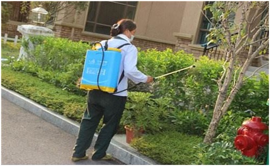 C、消杀员做好自我保护措施,在消杀场所无人的前提下,采用手提式电动超低容量喷雾器按药品比例兑 水,消杀药品一般采用氯菊酯实行空间喷洒、喷出的杀虫剂雾粒子与昆虫接触,使其毒死。