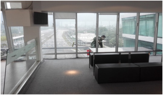 玻璃幕墙:裙楼部分的准备方法同清洗马赛克外墙,采用的清洁剂、清洁工具为玻璃水、洗洁精、百洁巾、玻璃刮刀等。高处作业采用吊船清洁,先把自由伸缩的挂臂固定在天台的女儿墙上,在挂臂的另一端放上平衡铁,平衡铁的重量应超过于人、吊篮及清洁工具重量的总和。放下牵引钢丝绳套上吊篮,开启开关提升到顶部,工作人员带上清洁用品上吊篮内开始操作,进入吊篮应保持吊篮平衡,从上往下有序地清洁。玻璃幕墙每年全面清洁一次,局部污染,即时发现即时清理,以免日久难以处理干净。在操作吊篮时一定按照操作规程运作,以免发生意外,使用玻璃刮时应注意避免金属部分刮花玻璃表面。复合铝板:准备方法同清洗玻璃幕墙,清洁工具为起渍水、百洁布、玻璃刮刀等。清洗方法:用百洁布浸起渍水在复合铝板表面上清洗,然后用水冲洗干净;如有局部严重污染或有污垢,应加重清洁剂的浓度重点擦洗。复合铝板表面清洗每年全面清洁一次,如发现局部污染,即时清洁。使用玻璃刮时应注意避免金属部分刮花玻璃表面。